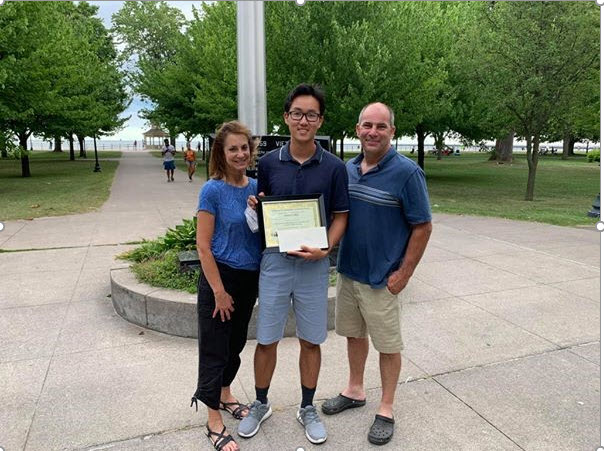 Alex Rosario receiving his award from members of the Scholarship Committee, Brian Labigan and Barbara Lake